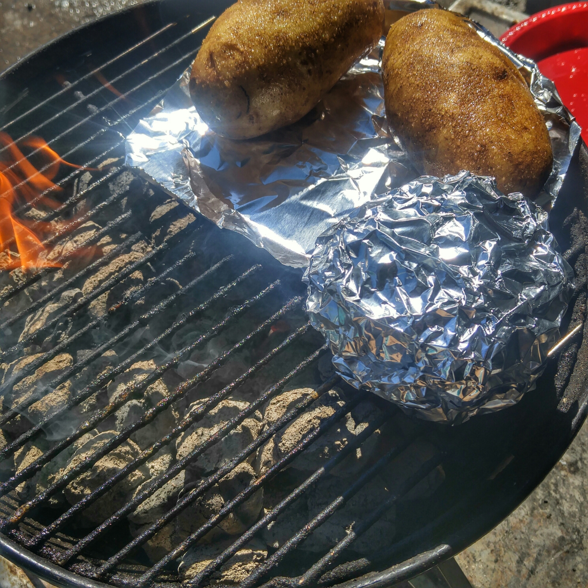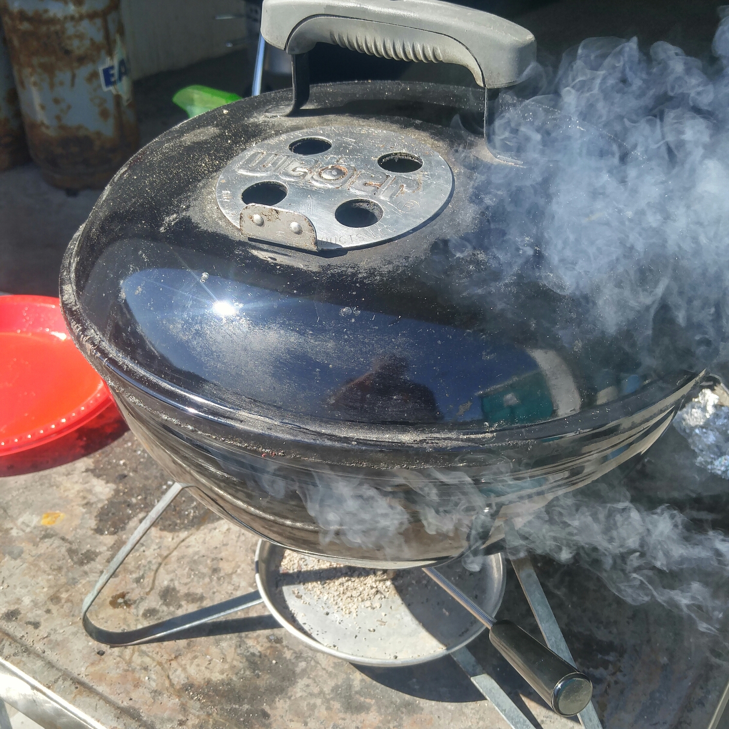 It was easy enough to handle and the extra handle of the Weber is actually a non-factor one way or another for my use. Pouring the coals into the charcoal basket was easily controlled without the hinged extra handle on the Weber unit. The handle on the Broil King 63980 was cool to the touch and the heat deflector did its job well.