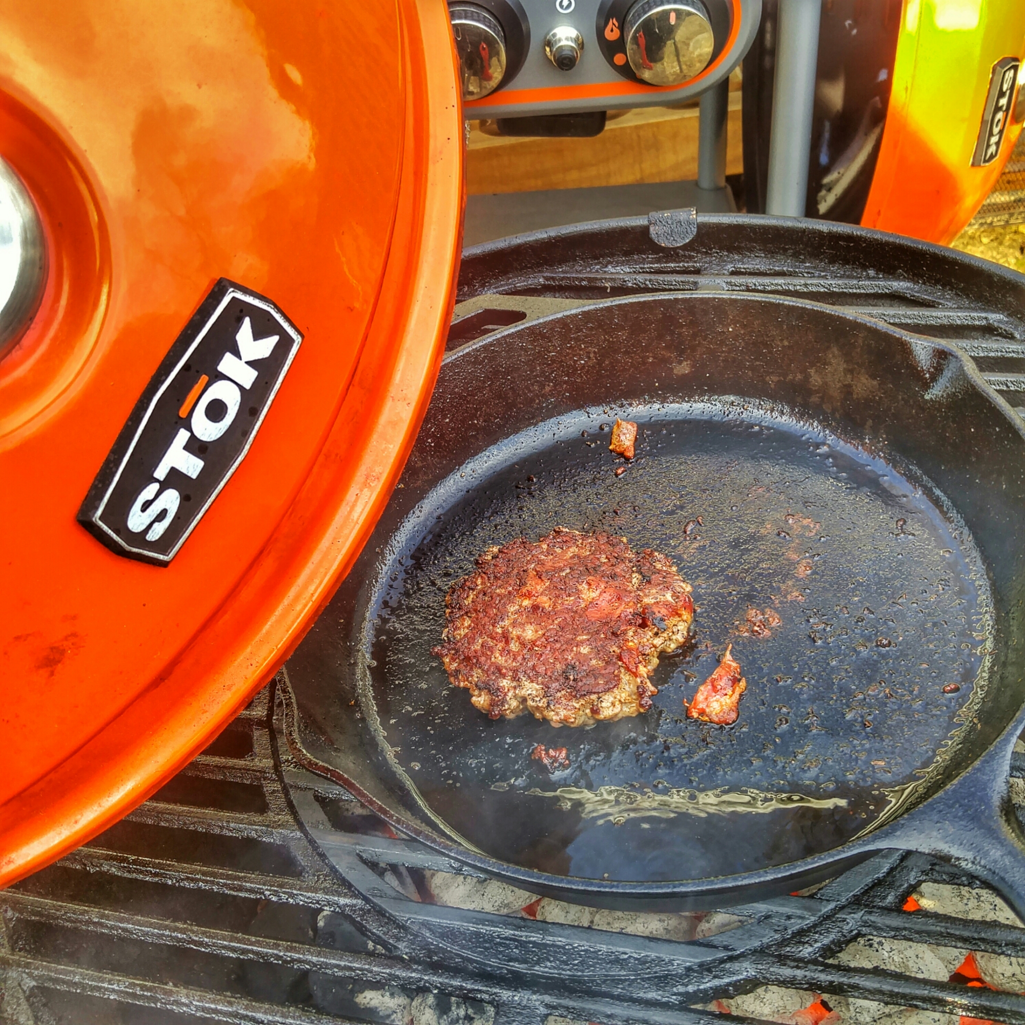 My daughters wanted to have a cookout after school so we loosely formed up some 80/20 burgers with baked bacon bits inside and smashed em up on the STOK Drum!