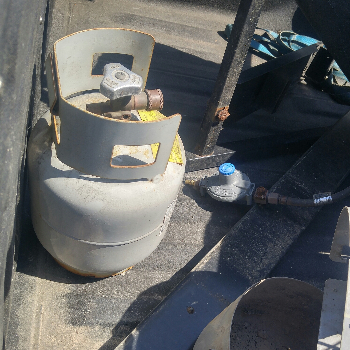 Got that last nut and the base is secure. Can’t figure out what this wire rod goes to but it did come in handy this morning. I placed the top part of the frame on top of the base to see how it lined up and hooked up the 5lb propane tank to try it out. First ten clicks nothing but I did smell propane. So I stuck the wire rod into the burner tube thinking maybe there was an obstruction, twirling it around a bit. After that, success!