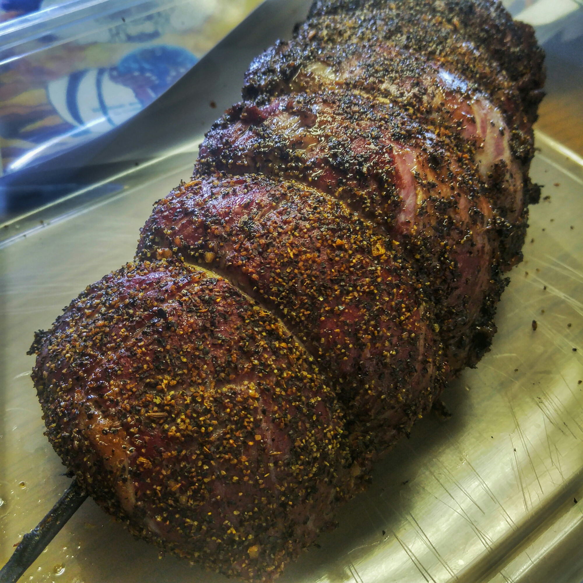 Rubbed Down With EVOO, Coarse Salt, Restaurant Grind Black Pepper and Montreal Seasoning.