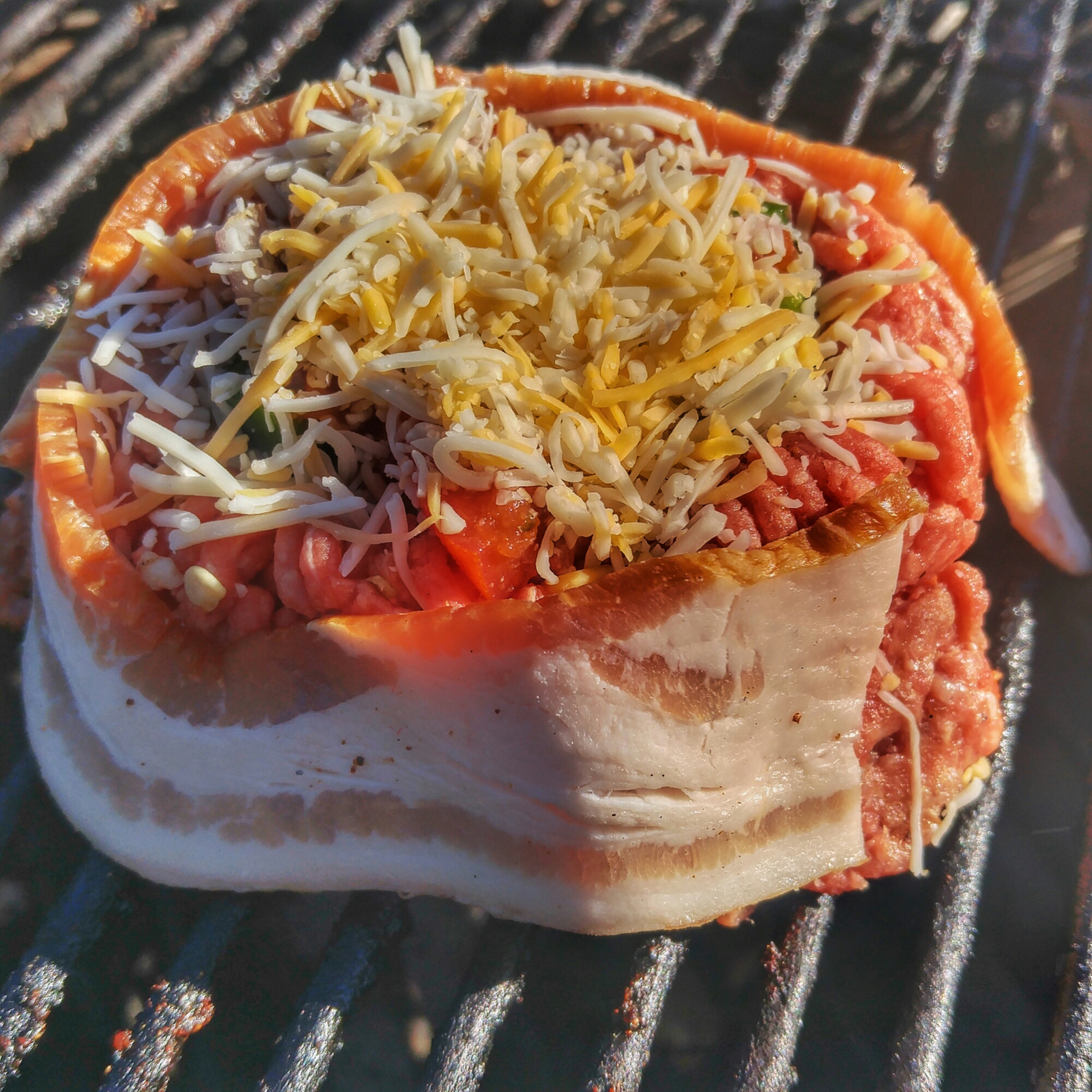 Stuffed with Jalapenos, Salsa, Chopped Red Onion, Shredded Mexican Cheese and Wrapped In Bacon!