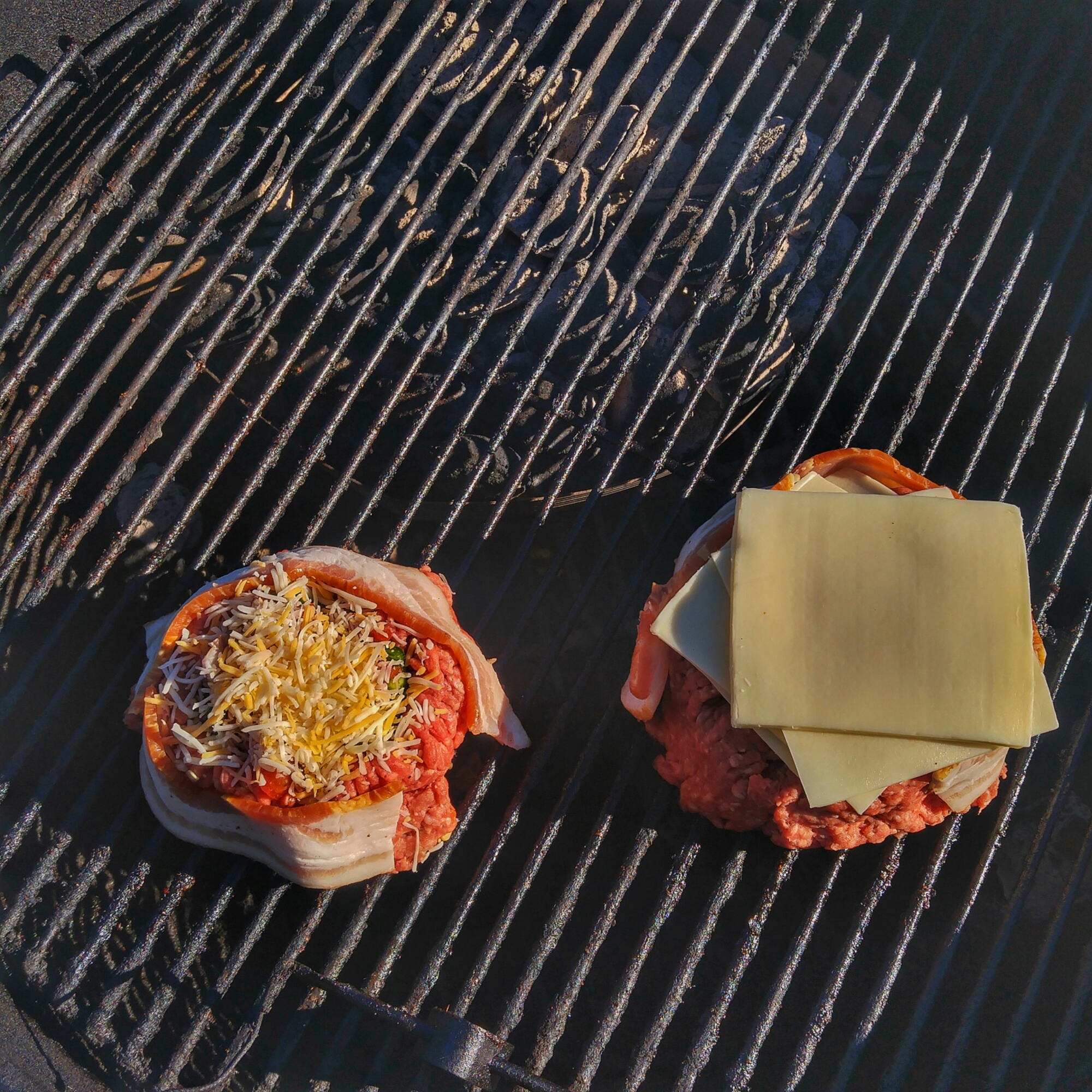As you can see the foil pans are saving a messy clean up from the dripping melted cheese and bacon fat.