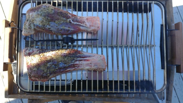 Trimmed the silverskin and rubbed with EVOO, coarse salt, pepper, minced garlic, rosemary and thyme overnight in the fridge.