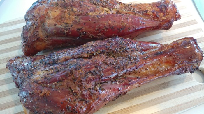 Goal is smoking the beef shanks for about an hour and a half between 250-275 to get color and smoke.