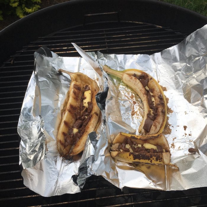 Banana split for dessert. Slice of banana bread the middle at cinnamon brown sugar butter and chocolate put it on the grill for 15 minutes and you’re in heaven. There is a new barbecue champion in Gloucester and his name is Chris McCarthy.