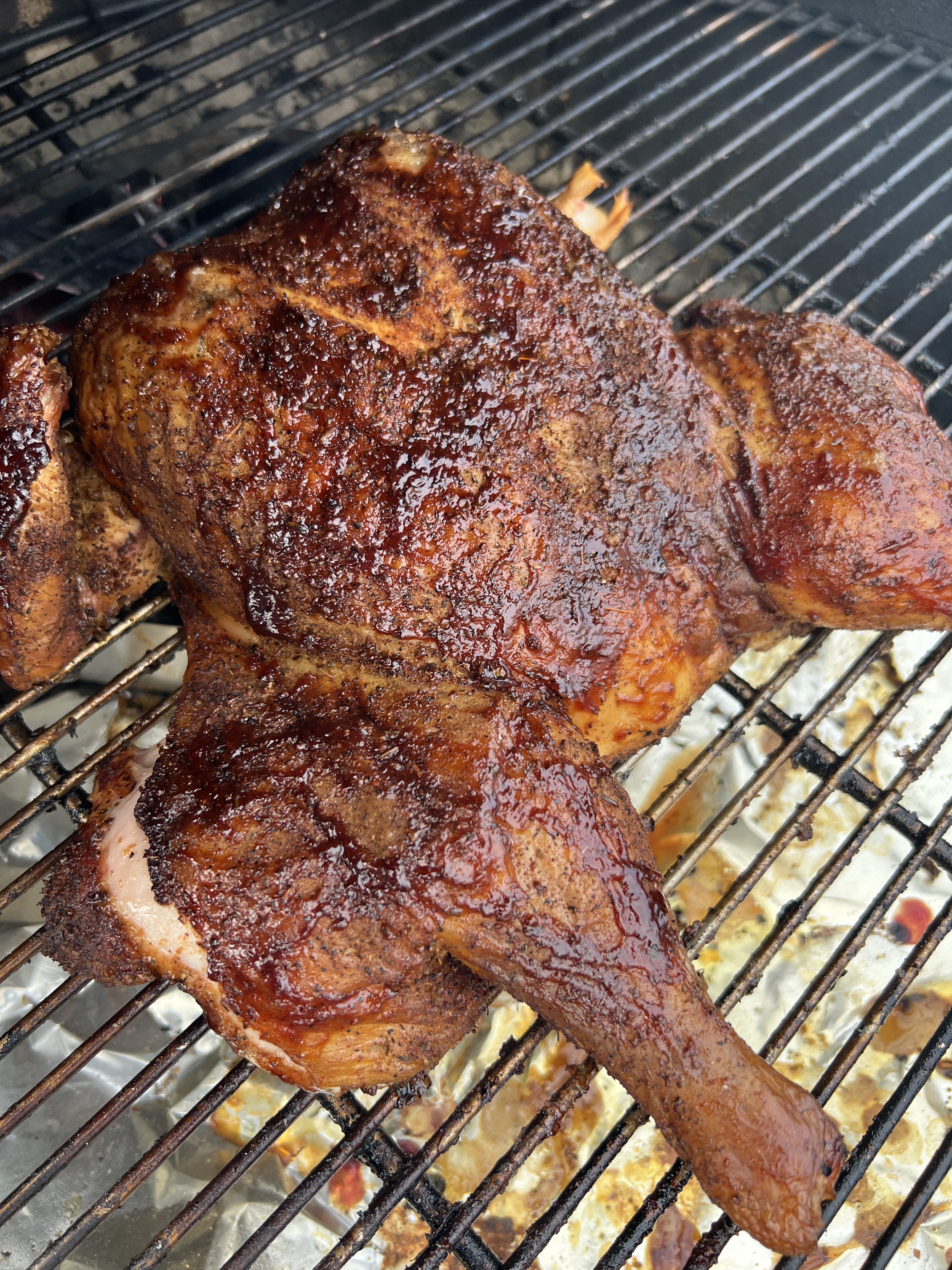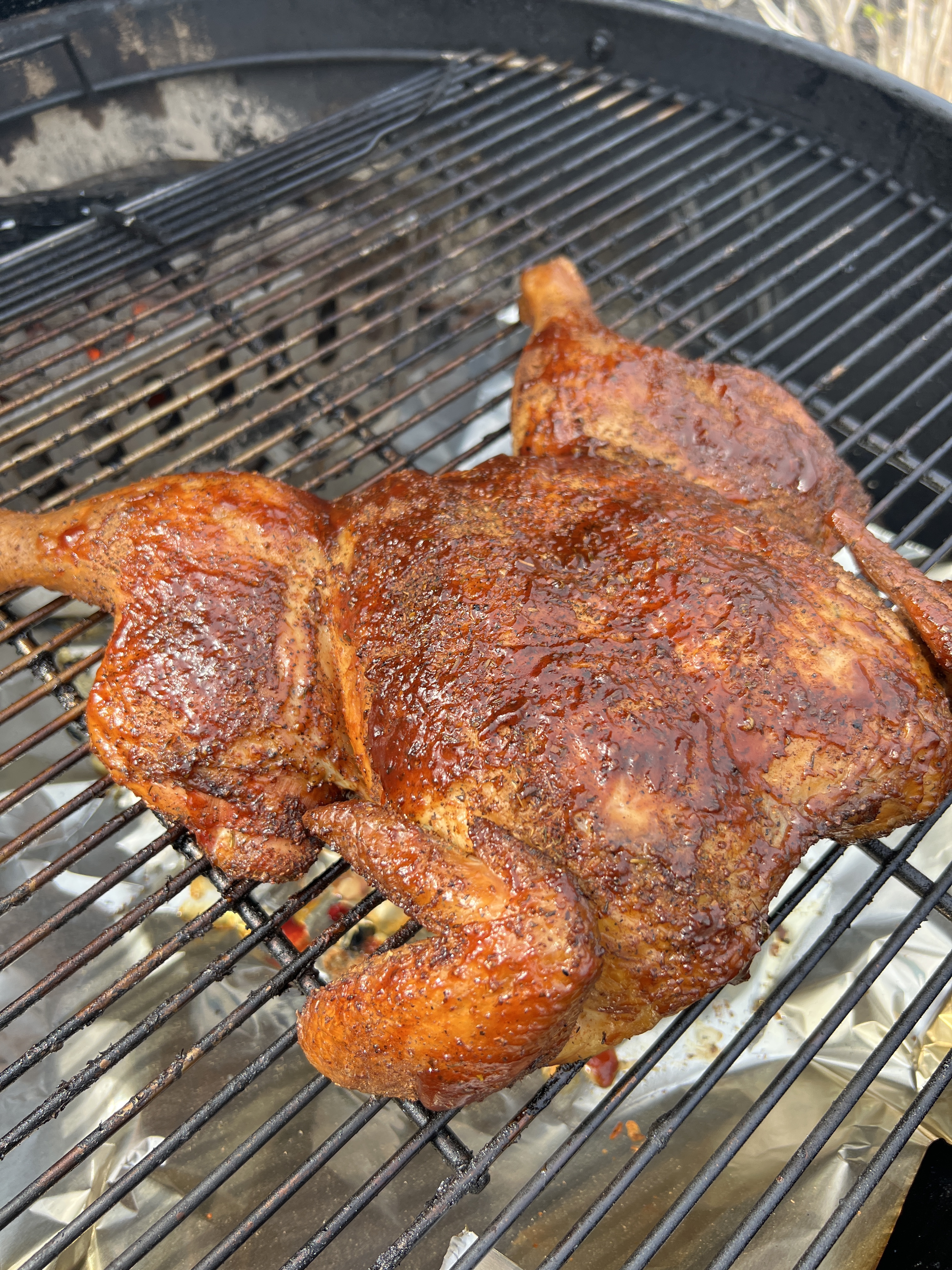 Here’s my chicken on the Weber 26 which I let cook offset the coals while the wife and I did spring cleanup yard work-