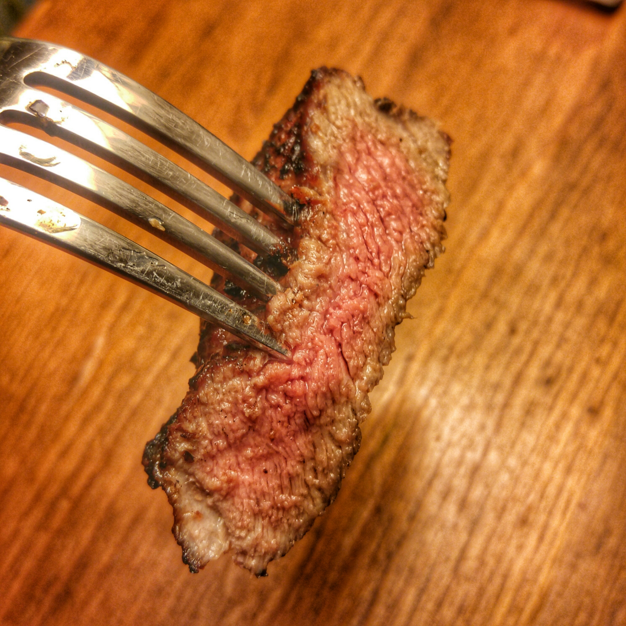 Tossed the ribeye on, three minutes, then flipped for three minutes on the other side. The upside down STOK Charcoal Basket created an intense amount of directed volcano-like heat, perfect for searing.